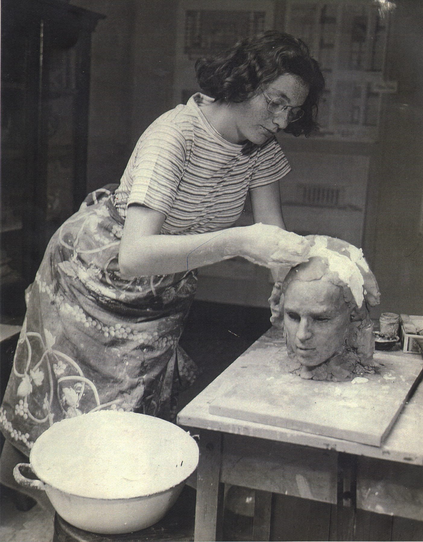 Miriam’s life as an artist began as a sculptor. She is 15 or 16 in the early photo included here and was already receiving recognition for her portraiture. She had the uncanny ability to render in three dimensions a true copy of what she was taking in visually. She worked effectively both additively, building up the piece in clay or another medium, and subtractively, carving away material such as wood or stone.