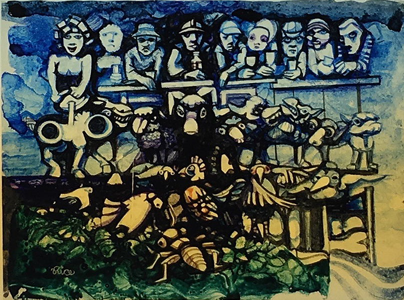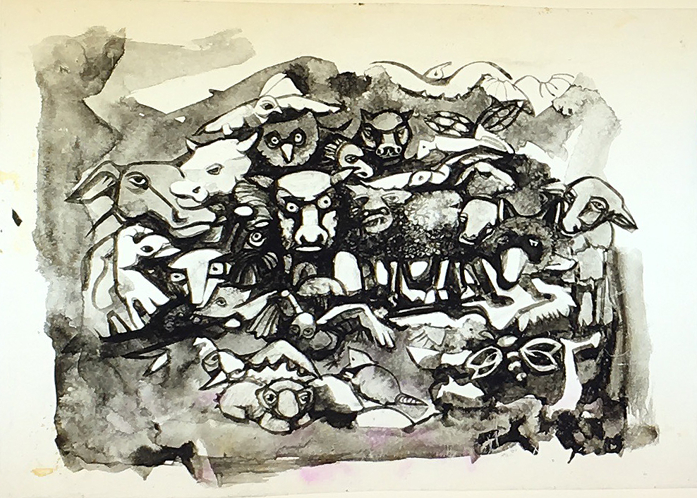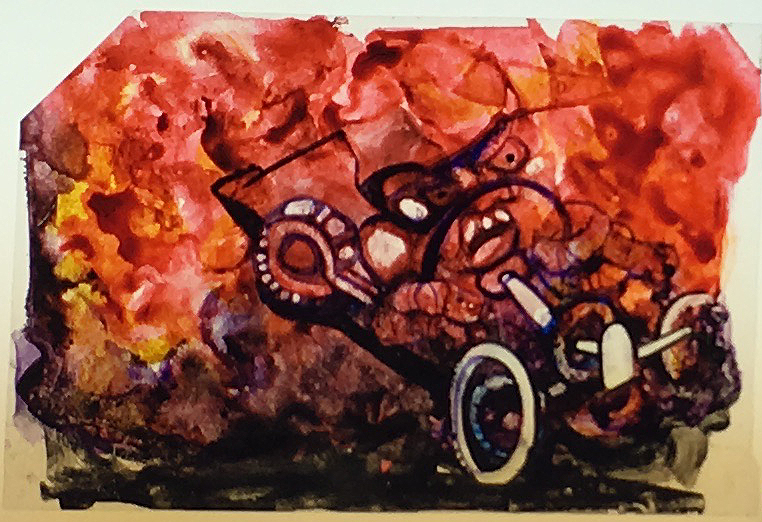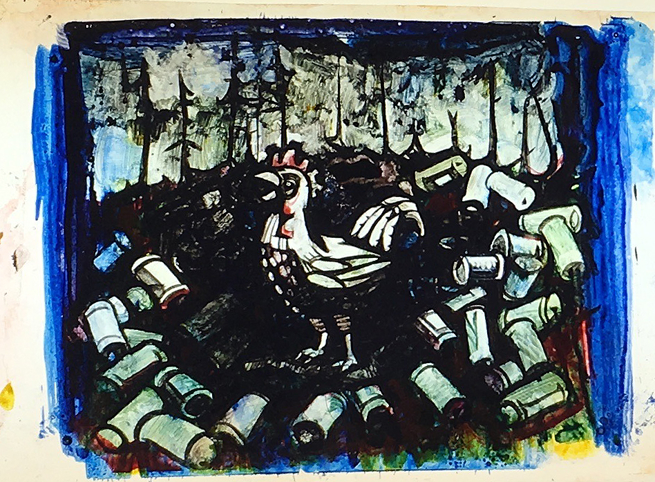 These film acetates or “cels” are single drawings from the animated films Ray made in the 1960s and 70s. These 87 cels are all that are left of the hundreds and hundreds of drawings used to produce over 40 experimental art films. The films use this traditional hand-drawn technique, as well as time lapse and stop motion animation. Watch a sampling of the films and learn more about the films here.